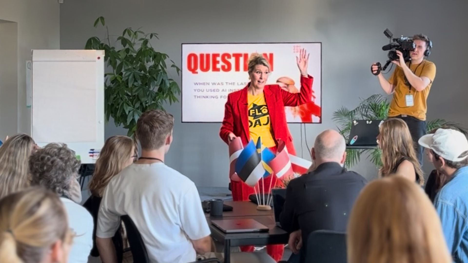 Konferensen Next Gen Democracy i Riga inleds med en föreläsning av Johansson. 25 unga journalister sitter knäpptysta i rummet när Linda säger i sin presentation: “AI kommer att ta era jobb”.